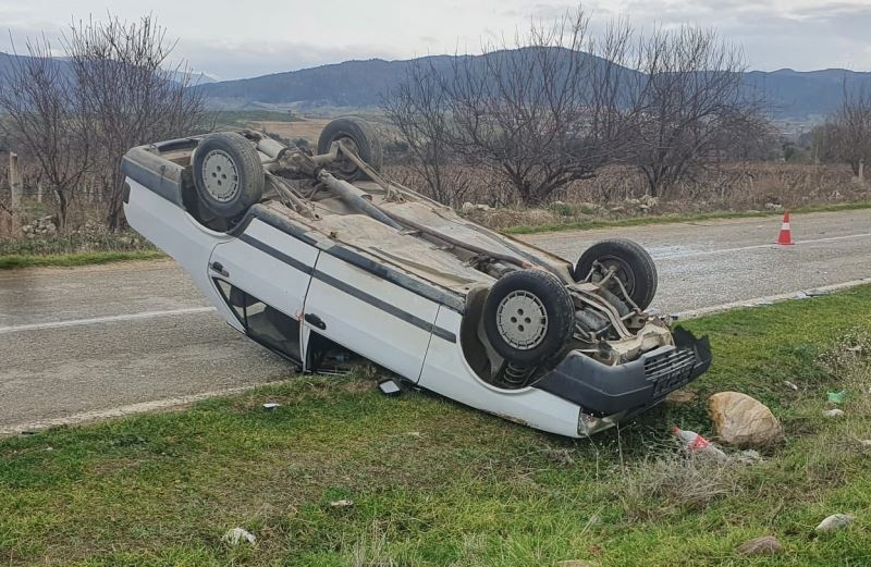 Manisa’nın Sarıgöl ilçesinde sürücüsünün direksiyon hakimiyetini kaybettiği otomobil takla atarak ters döndü. Kazada 2 kişi yaralandı.