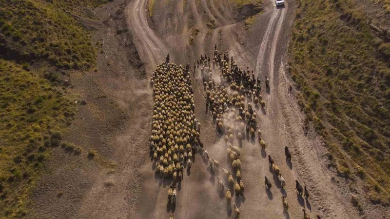 Koyun sürülerinin tozlu yolda ilerleyişi, çoban ve koyunları zorlarken, gün batımına doğru oluşan kızıl renkler ise güzel görüntüler ortaya çıkarıyor.