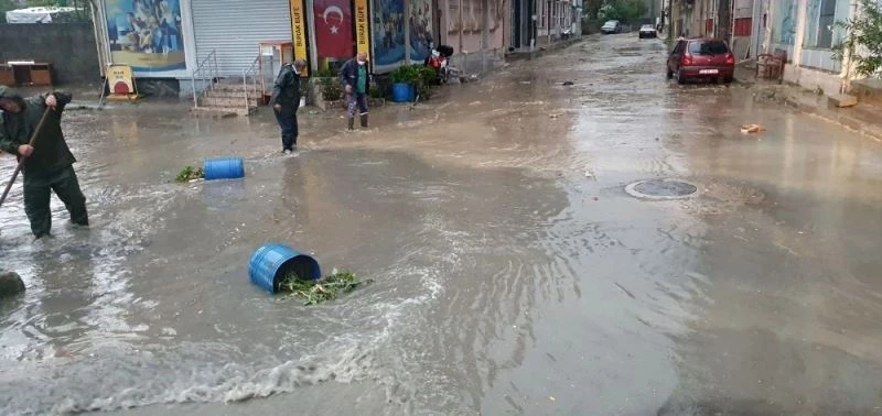 Balıkesir’in Susurluk ilçesinde sabaha karşı başlayan şiddetli yağışta sokaklar dereye dönerken, bazı ev iş yerlerini su bastı.