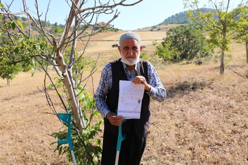 Kahramanmaraş’ta 86 yaşındaki bir çiftçi, susuzluktan dolayı bahçesindeki yaklaşık 50 adet ceviz ağacının kuruduğunu söyleyerek yetkililerden yardım istedi.