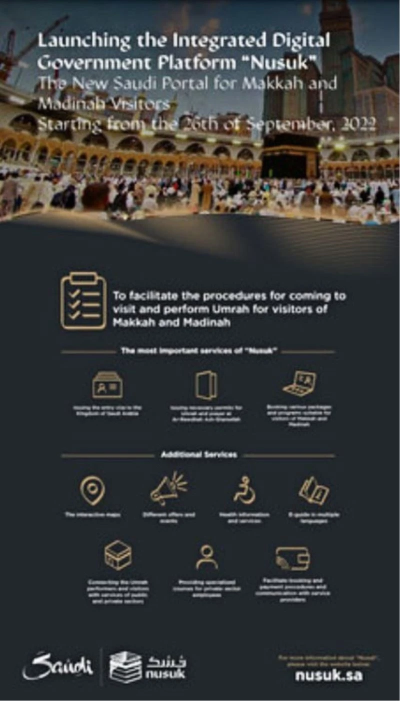 Uygulama, hacılar ve ziyaretçiler için bilgi ve geniş bir hizmet yelpazesi sunarak Umre Ritüellerini rahatlık ve konfor içinde yapabilmelerini sağlıyor. Ayrıca, Suudi Vizyonu 2030 hedeflerine ulaşmak için sağlanan hizmetlerin kalitesini artıracak ve ziyaretçilerin dini ve kültürel deneyimlerini zenginleştirecek.