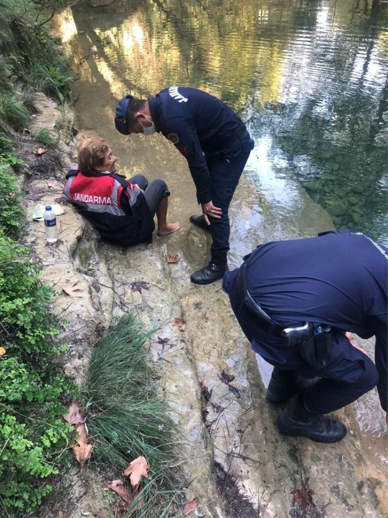 Antalya’da çocuklarıyla birlikte gittiği Cennet Kanyonunda dengesini kaybederek suya düşen yaşlı kadın jandarma ekipleri tarafından kurtarıldı. Keşif için bölgede bulunan Yeniköy Mahalle Muhtarı Abdullah Zeki Kavuklu ve Sarılar Jandarma Karakoluna bağlı ekipler, yaşlı kadını düştüğü yerden çıkarırken Jandarma ekipleri üşümemesi için montlarını yaşlı kadına giydirdi.