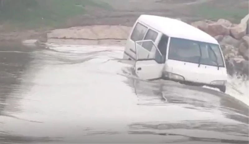 Edinilen bilgiye göre, Karacabey ilçesine bağlı Yolağzı Mahallesi’nde bir minibüs sürücüsü derenin suyu az olduğu zamanda araçların geçiş yaptığı beton köprüden karşıya geçmek istedi. Minibüs yolun yarısına gelmeden suya kapıldı. Sürücü ve minibüs içerisindekiler son anda minibüsten inip canlarını kurtarırken, sürüklenen minibüs derenin döküldüğü bölgedeki kayalıklara çarpıp şelaleden düşmekten son anda kurtuldu. O anlar bir vatandaş tarafından anbean kaydedildi.
