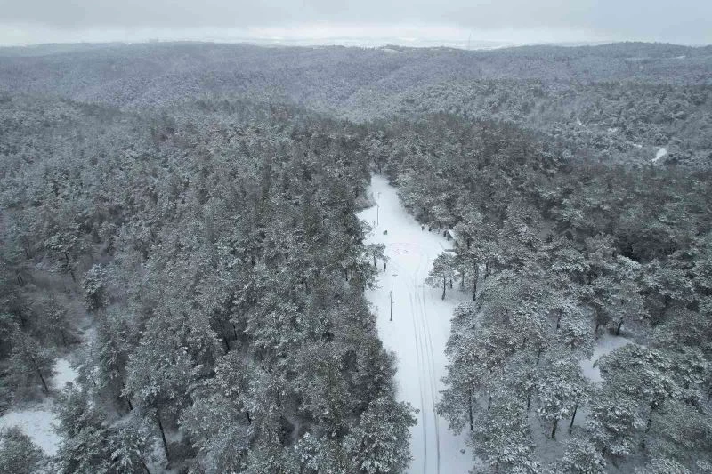 Meteoroloji Genel Müdürlüğünün uyarılarının ardından etkili olan kar yağışı kentin birçok noktasını beyaza büründü. Beyaz örtü ile kaplanan Şamlar Tabiat Parkı’nda oluşan kartpostallık manzaralar havadan görüntülendi.