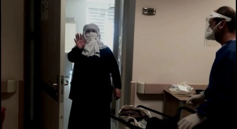 Sivas’ta Covid-19 testi pozitif çıkan yaşlı kadın, gördüğü tedavinin ardından hastaneden sağlık çalışanlarına teşekkür ederek ayrıldı.