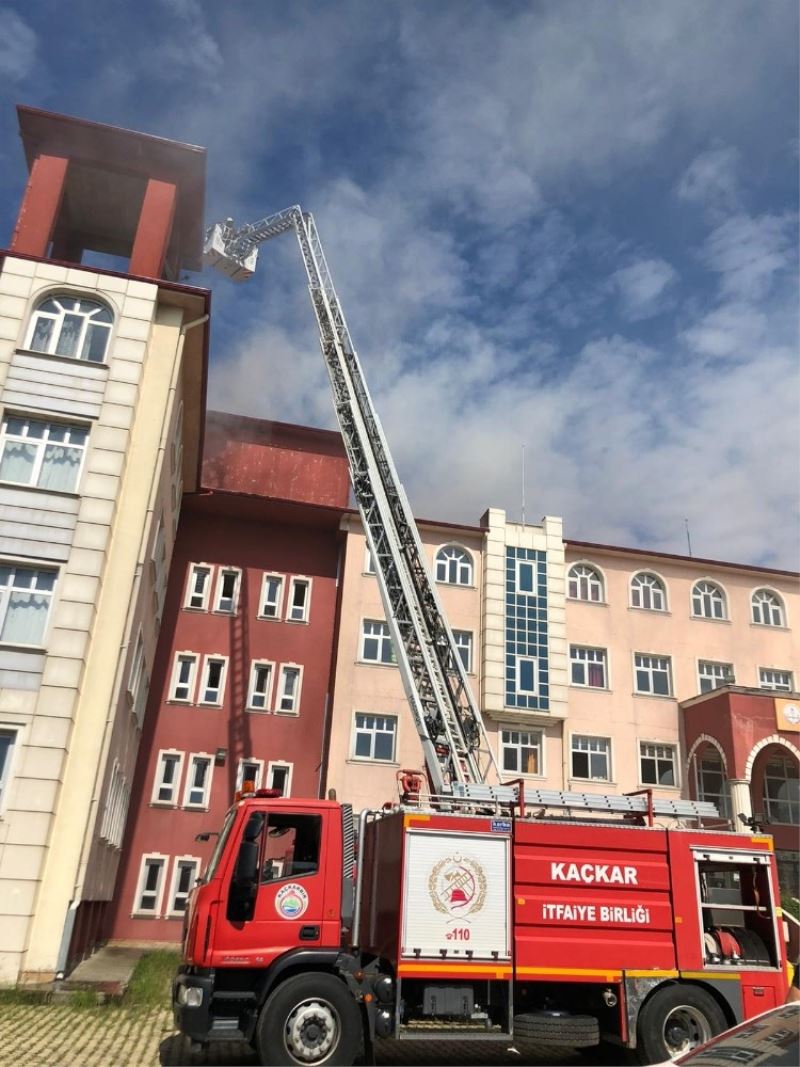 Rize’nin Pazar ilçesinde bir okulun çatısında tadilat yapılırken çıkan yangın itfaiye ekipleri tarafından söndürüldü.