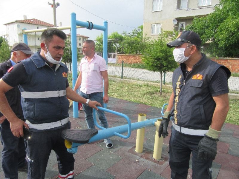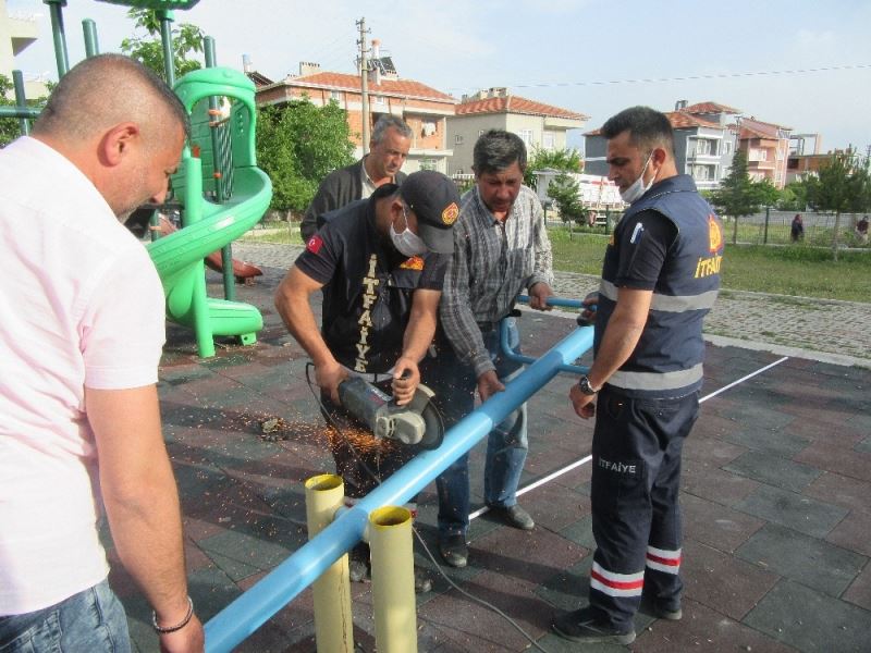 Afyonkarahisar’ın Sandıklı ilçesinde oyun alanında bulunan tahterevallide sıkışan kedi itfaiye ekipleri tarafından kurtarıldı.