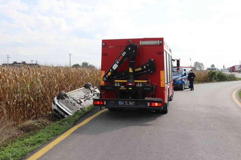 Sakarya’nın Erenler ilçesinde sürücünün direksiyon hakimiyetini kaybetmesi neticesinde kontrolden çıkan lüks otomobil mısır tarlasına devrildi. Sürücü, meydana gelen kazayı burnu bile kanamadan atlattı.