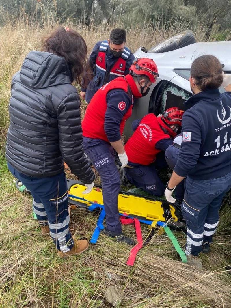 Edinilen bilgiye göre, Muhammet Fatih Ç. yönetimindeki 10 DCB 37 plakalı otomobil, Güre Mahallesi SSK Kampı mevkisinde kontrolden çıkarak takla attı. Kazada yaralanan sürücü, otomobilinde sıkıştı.