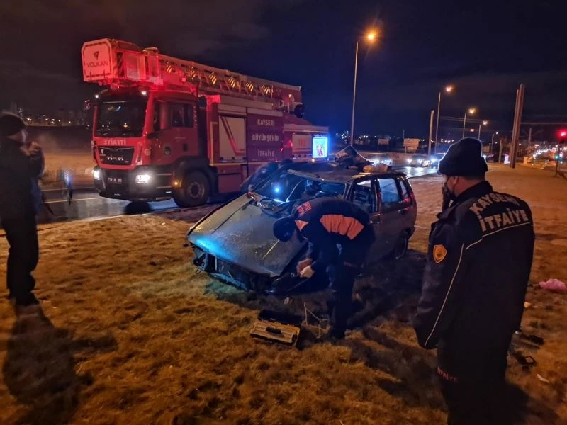 Kayseri’nin Melikgazi İlçesi’nde takla atarak kaza yapan otomobil sürücüsü yaralandı.
