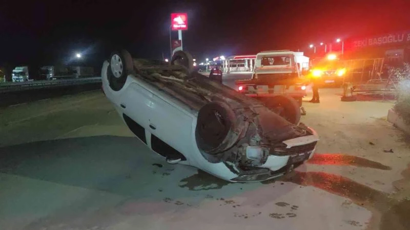 Kaza, Bursa’nın Orhangazi ilçesinde meydana geldi. Edinilen bilgiye göre, Yalova istikametinden Bursa istikametine doğru gitmekte olan A.D. (54) idaresindeki 34 RL 7956 plakalı otomobil benzinlik yakınlarında kontrolden çıktı. Benzinlik girişindeki kaldırıma çarparak takla atan otomobil ters döndü.