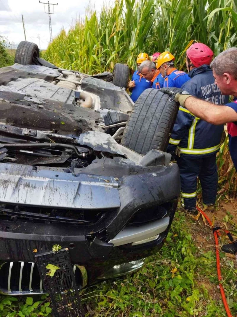 Tokat’ta mısır tarlasına devrilen otomobilin sürücüsü kazayı yaralı olarak atlattı.