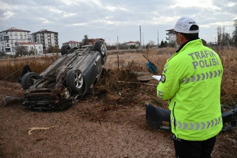 Aksaray’da sürücüsünün direksiyon hakimiyetini kaybettiği otomobil takla atarak önce şarampole sonra da tarlaya devrildi. Kazada sürücü ağır yaralandı.