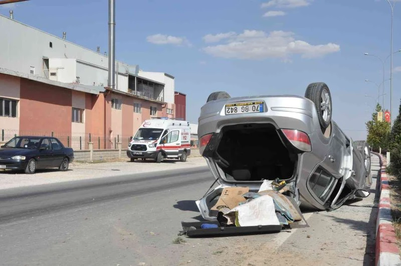 Karaman’da kontrolden çıkan otomobil refüje çarptıktan sonra karşı şeride geçerek ters dönerken, sürücüsü ölümden döndü.