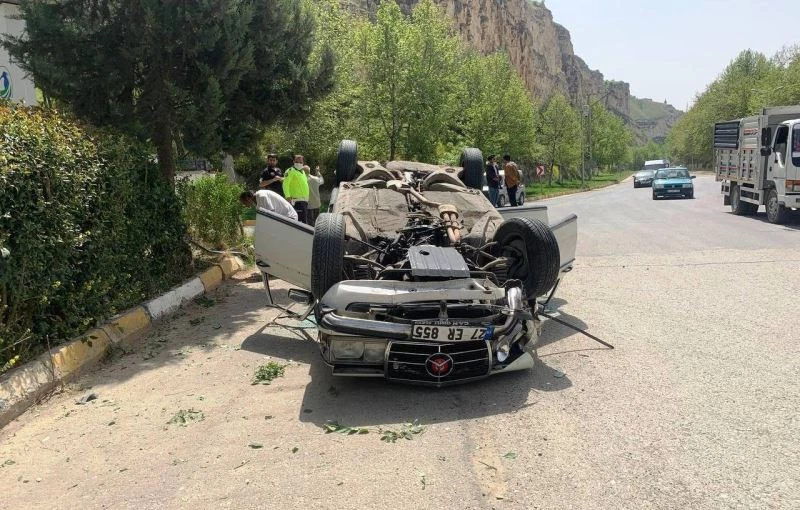 Şanlıurfa’nın Birecik ilçesinde kaldırıma çarpan otomobil ters döndü. Devrilen otomobilin sürücüsü yaralandı.
