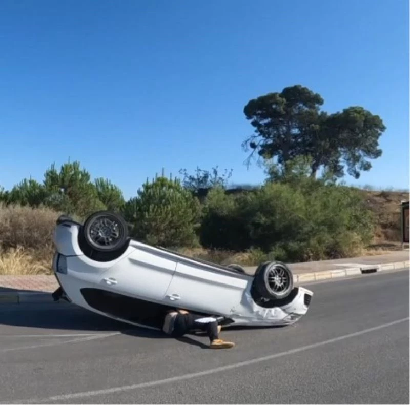 Celal Bayar Üniversitesi Arkeoloji Bölümü öğrencisi Ozan Kuşcu (22), arkadaşının kullandığı otomobille sosyal medya kanallarına içerik üretmek için dışarı çıktı. Lara bölgesinde seyir halinde bulunan ve Emre Akkurt’un kullandığı otomobil, sürücüsünün direksiyon hakimiyetini kaybetmesi sonucu önce refüje vurdu, ardından ters dönerek karşı şeritte sürüklenmeye başladı. Sürüklenen araç, bir başka araca çarptıktan yaklaşık 107 metre sonra durdu. Emniyet kemerleri takılı olan Kuşcu ve Akkurt, kazayı yara almadan atlattı ve araçtan kendi imkanlarıyla çıktı.