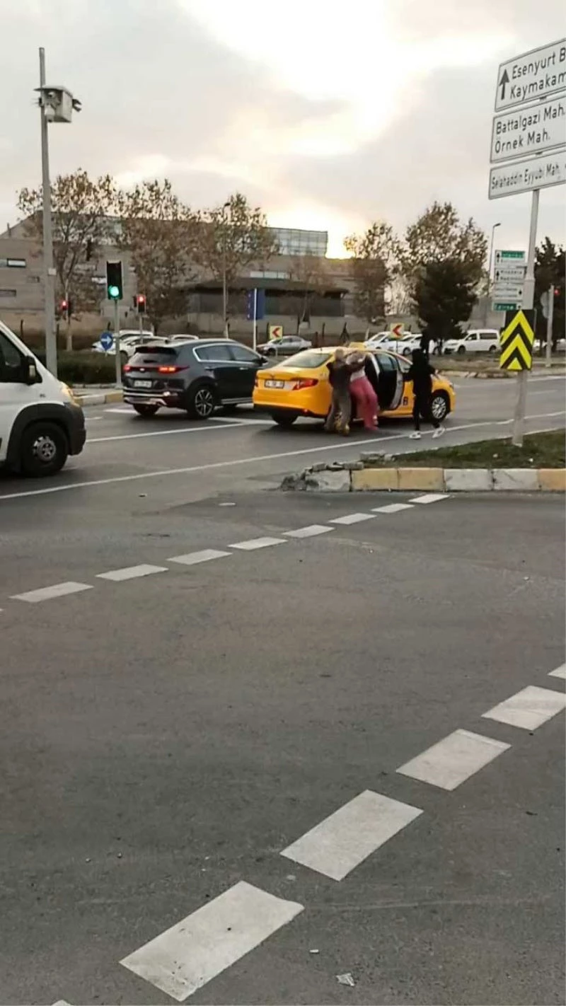 Esenyurt’ta taksi şoförü, müşterisini yol üzerinde araçtan indirerek darp etti. Kadının saçlarını çekerek, kafasına vuran sürücüye çevredeki vatandaşlar müdahale ederken, yaşanan o anlar kameraya yansıdı.