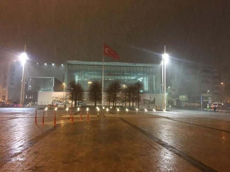 Megakent’te sabahın ilk saatlerinde kar yağışı etkili olmaya başladı. Kentin önemli noktasından biri olan Taksim Meydanında kar yağışı güzel bir görüntü oluşturdu. Yağan kar eşliğinde inşaatı devam eden Taksim Camii ve Atatürk Kültür Merkezi hoş göründü.
