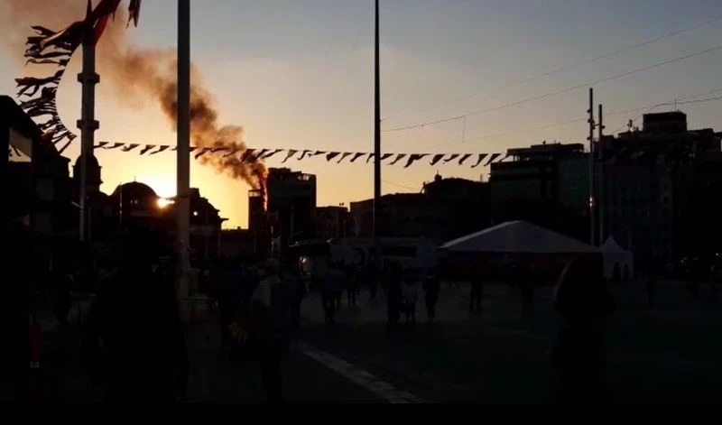 Taksim Meydanı’nda bir otelin yan cephesinde yangın çıktı. Ekiplerin yangını söndürme çalışmaları sürüyor.