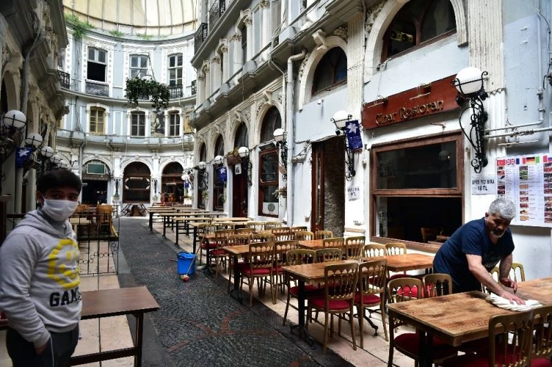 Taksim’de restoran ve kafeler yeni normale hazırlanmış şekilde açıldı. Beyoğlu Belediyesi zabıta ekipleri, Çiçek Pasajı ve Nevizade’de denetimlerde bulundu. Metre ile masalar arasındaki mesafeleri ölçen ekipler, mekan sahiplerine de uyarılarda bulundu