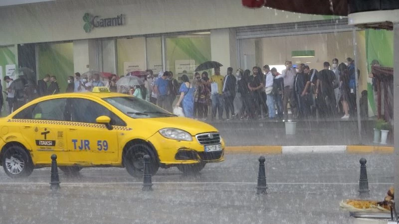 İstanbul’da etkili olan sağanak yağış Taksim’de vatandaşlara zor anlar yaşattı. Aniden bastıran yağmura hazırlıksız yakalananlar kaçacak yer aradı.