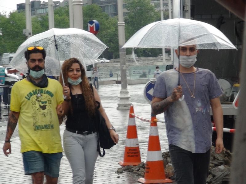 İstanbul Taksim Meydanı’nda da yağmur başladı. Bazı vatandaşların yağmura hazırlıksız yakalandığı görüldü.