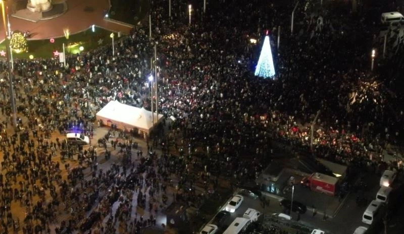 Öte yandan pandemi öncesini aratmayan kutlama anları havadan görüntülendi. Görüntülerde, yeni yıla girilmesiyle birlikte atılan havai fişekler ve kalabalık görülüyor.