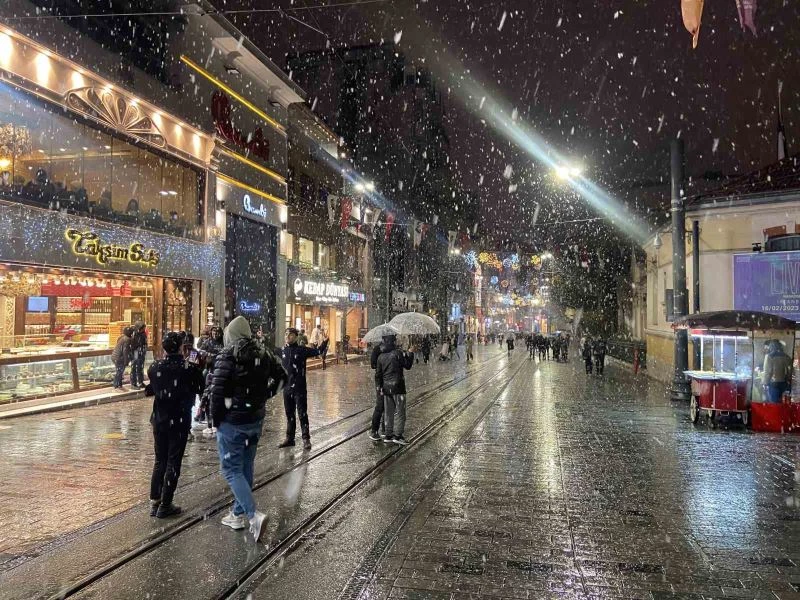 Taksim’de yılın ilk karı lapa lapa yağdı. İstiklal Caddesi’nde vatandaşlar karın tadını bol bol fotoğraf çekerek çıkardı.