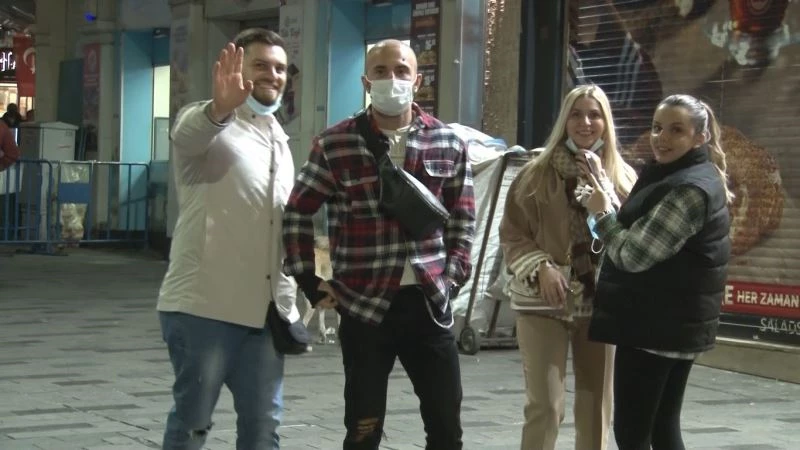 Korona virüsle mücadele kapsamında alınan kararla bu akşam saat 21.00’de başlayıp pazartesi sabah 05.00’e kadar sürecek olan 56 saatlik sokağa çıkma kısıtlaması başladı. Yasağın başlamasıyla birlikte İstanbul’da sokak ve caddeler yavaş yavaş boşalmaya başlarken İstiklal Caddesi ve Taksim’de manzara pek değişmedi. Cadde ve meydan turistlere kalırken görevli polis ve zabıta ekipleri megafonlarla kısıtlamadan muaf tutulan yabancı uyruklu vatandaşlara maske ve sosyal mesafe konusunda uyarılarda bulundu.