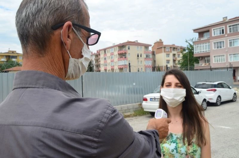 Korona virüsle mücadelede geçilen “yeni normal” süreçte birçok iş kolu yeni normale göre düzenlemeler yaparken, taksicilerden de adım geldi. Kırklareli’nin Lüleburgaz ilçesinde salgın riskinin devam etmesi nedeniyle önlemlerini gevşetmeyen bir taksi durağı, müşterilerine uyguladığı dezenfeksiyon işlemlerinin ardından ateş ölçer sistemine geçti. Bu doğrultuda aracında ateş ölçer cihazı bulunduran 50 yaşındaki taksici Özcan Papatya, müşterilerinin ilk olarak ateşini ölçmeye başladı. Papatya, ateşi yüksek çıkan müşterisini aracına almazken, vatandaşlar da uygulamadan oldukça memnun kaldı.