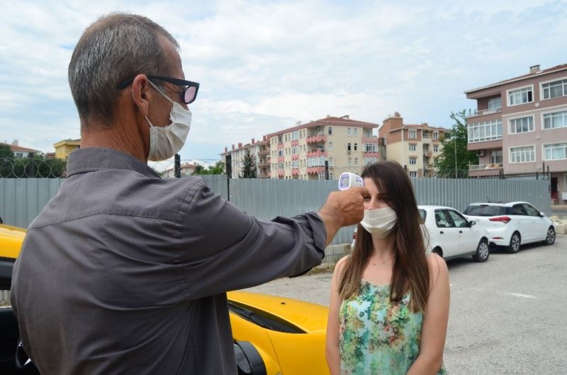 Taksisine ateş ölçer aldı, ateşi olanı aracına almıyor