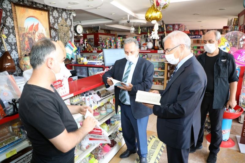 Talas Belediye Başkanı Mustafa Yalçın ve Talas Kaymakamı Yaşar Dönmez ilçe genelinde korona virüs salgınına karşı alınan önlemlerle ilgili denetimi sürdürdü.