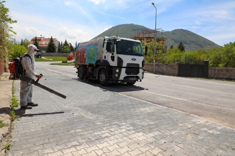 Kurumuş ot ve ağaç dallarının toplanmasından hafriyatların kaldırılmasına, dezenfekte ve ilaçlama işlemlerinden kaldırımların yıkanmasına kadar pek çok iş aynı anda yürütülerek görüntü kirliliği adına ne varsa ortadan kaldırılıyor.