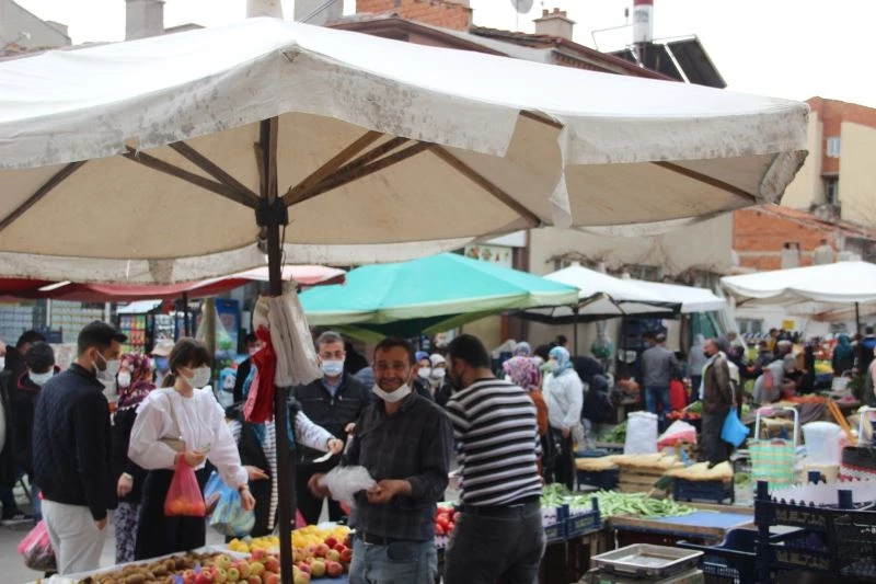 Korona virüs (Covid-19) salgınıyla mücadele kapsamında tam kapanmaya saatler kala Afyonkarahisarlılar pazarlara akın etti. Tam kapanma öncesi pazar alışverişine çıkan vatandaşlar sosyal mesafeyi ise unuttu.