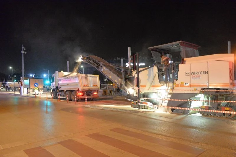 Öte yandan T1 ve T2 tramvay hatlarının birbirine entegrasyonu için Kent Meydanı’nda yapılan bağlantı çalışmalarında zarar gören asfalt da gece boyu yapılan asfalt kaplama ile yenilendi.