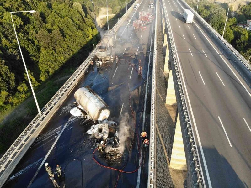 Tanker tırla çarpıştı, TEM Otoyolu trafiğe kapandı