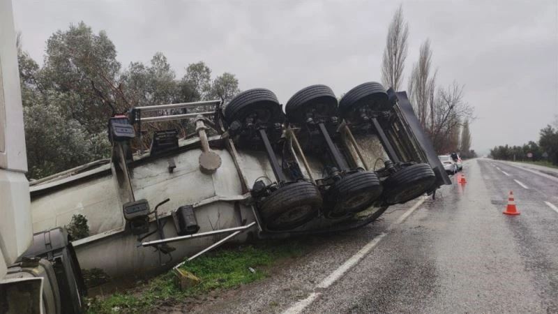Orhangazi-İznik Karayolu Keramet kavşağı yakınlarında meydana gelen trafik kazasında bir tanker, yağışın etkisiyle kayıp kontrolden çıktı. Tır, dorsesindeki tanker zeytinliğe devrilirken, tır sürücüsü ise hafif yaralandı.