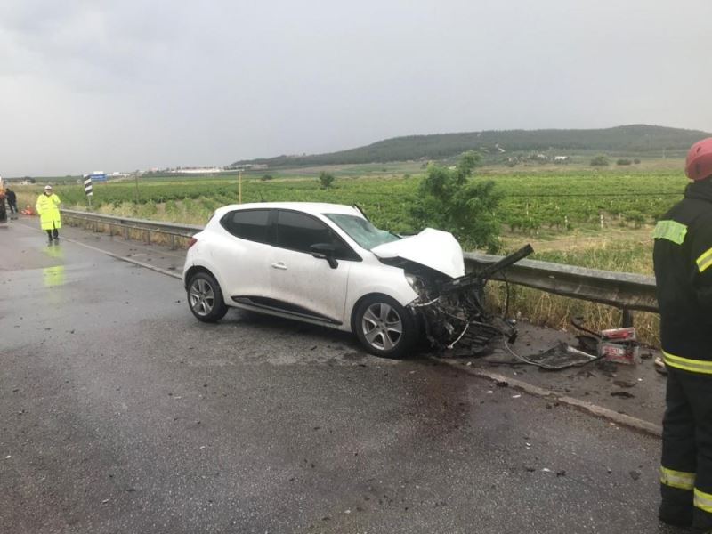 Tankere çarpan otomobil bariyerlere saplandı: 1 yaralı