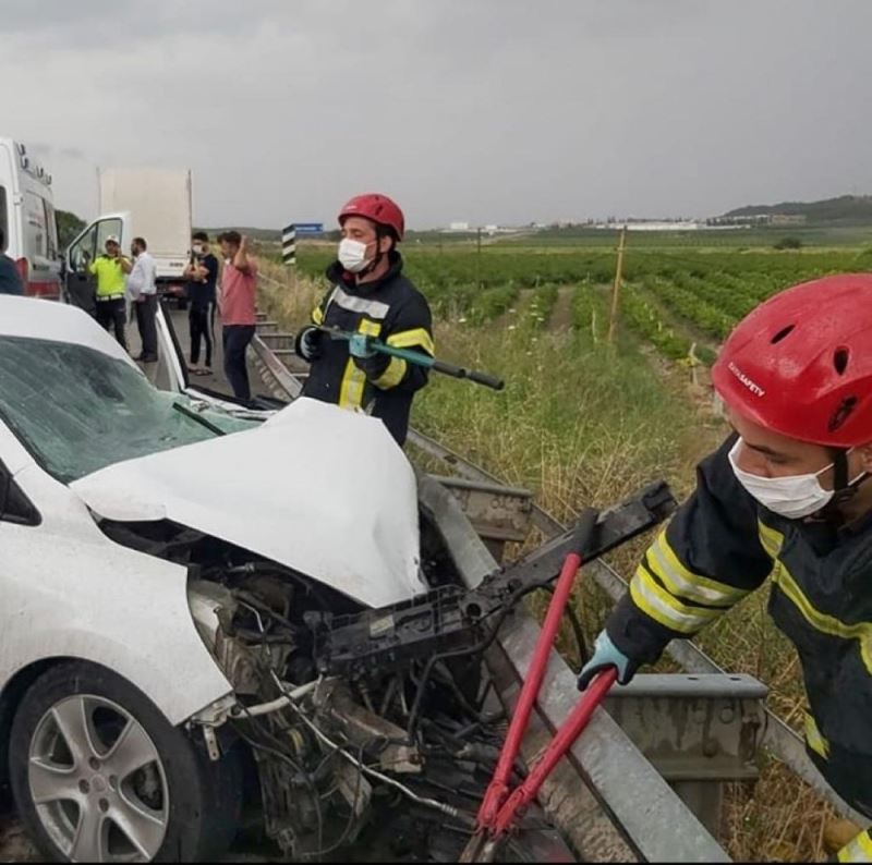 Manisa-Akhisar karayolunda refüjdeki ağaçları sulayan sulama tankerine çarpan otomobil bariyerlere saplandı. Sürücü sıkıştığı yerden itfaiye ekipleri tarafından çıkarılarak hastaneye kaldırıldı.