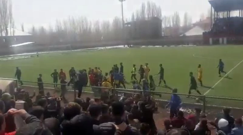Ağrı Süper Amatör Ligi Play-off turunda Patnos Gençlik Spor ile Diyadin Gençler Birliği Spor maçında çıkan kavgada ortalık savaş alanına döndü.