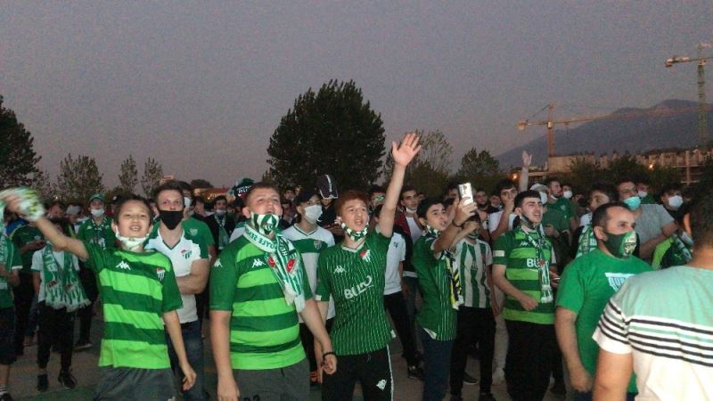 Bursa Büyükşehir Belediyesi, korona virüs salgını nedeniyle ara verilen TFF 1. Lig’in yeniden başlamasıyla Bursasporlu taraftarlar için Büyükşehir Stadyumu’nun açık otoparkına dev ekran kurdu. Binlerce kişinin geldiği alanda taraftarlar maçı ayakta ve oturarak izledi. Büyükşehir Belediyesi tarafından müsabakayı izlemeye gelenlere çeşitli ikramlarda da bulunuldu. Maç sırasında sosyal mesafe ve maske takılması yönünde uyarılar yapıldı. Girişlerde dezenfekten ve maske dağıtıldı. Taraftarların bir kısmı maçın heyecanıyla karşılaşmayı araçlarından çıkarak, açık havada izledi. Bazı taraftarların sosyal mesafe kuralına uymadığı görülürken, çoğunluk mesafe ve maske kuralına uyduğu görüldü. Ayrıca meşaleler yakarak ve tezahürat yaparak takımlarına destek verdi.