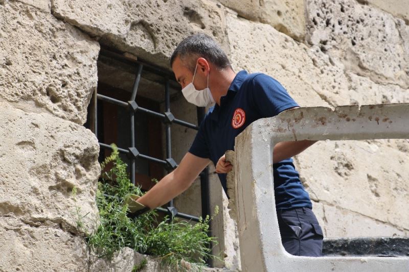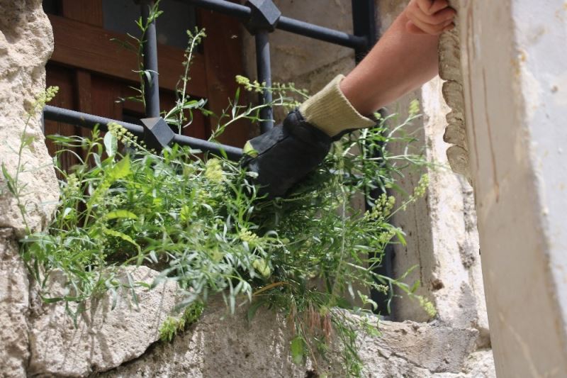 Sivas tarihi kent meydanındaki tarihi 3 medresenin ve Kale caminin iç ve dış cephelerinde ki yabani otlar tek tek temizlendi.