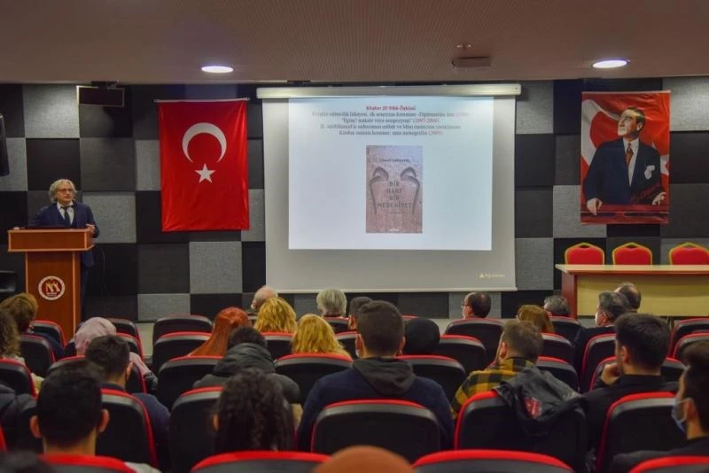 Prof. Dr. İlhami Yurdakul ‘Bir Harf Bir Medeniyet, Mim Kitabı’ isimli son kitabı üzerine yaptığı konuşmasında, kültür ve medeniyeti “mim” harfi sembolizmi üzerinden çeşitli örnekler üzerinden izah etti. Prof. Dr. İlhami Yurdakul, Türk-İslam Medeniyeti’nde sanattan edebiyata, siyasetten tasavvufa, sözlü kültürden bürokrasiye, mistisizmden rüya tabirlerine, medreseden mektebe, ebcet hesabından musikiye ve gizli teşkilatlara kadar hemen hemen tüm alt disiplinlerde kullanılan mim sembolizmi üzerinden kültür ve medeniyetimizden örnekler verdi. Prof. Dr. İlhami Yurdakul’un konuşmasında, tek bir harfin bile araştırma konusu olabileceğini, hakkında zengin malzemelerin bulunabileceğini ve alana özgün katkı sunabileceğini ifade ederek yaklaşık 20 yıllık bir emekle ortaya çıkardığı belge ve bilgilerden hareketle kaleme aldığı kitabının geçtiğimiz ay okuyucuyla buluştuğunu söyledi.