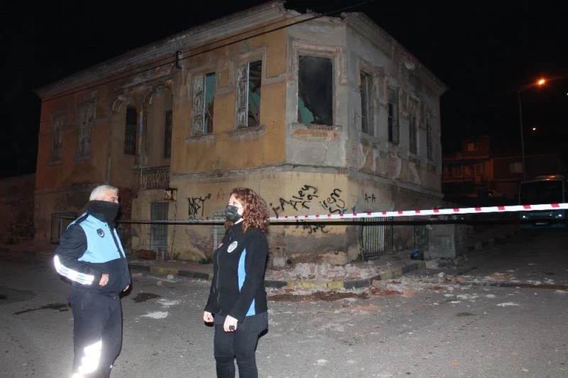 Manisa’nın Alaşehir ilçesinde boş halde bulunan 2 katlı tarihi bir binanın çatısından beton parçalar büyük bir gürültüyle aniden çöktü. Binanın boş olması ve çevresinde kimsenin bulunmaması bir faciayı engelledi.