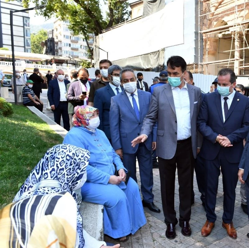 Osmangazi Belediye Başkanı Mustafa Dündar, Tarihi Çarşı ve Hanlar Bölgesi’nde gerçekleştirilen korona virüs tedbirleri denetiminde vatandaşlara, Temizlik (T), Maske (M) ve Mesafe (M) kuralını hatırlattı.