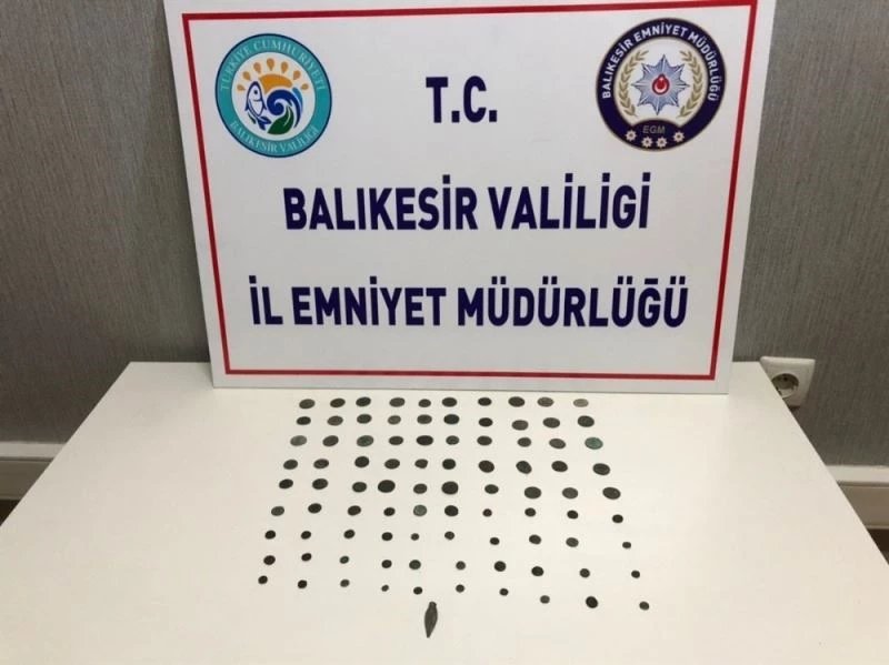 Balıkesir’in Edremit ilçesinde bir şahsın evinde tarihi eser kaçakçılığı şüphesiyle Edremit KOM Grup Amirliği tarafından arama yapıldı. Yapılan aramada çok sayıda tarihi eser ele geçirildi. Edinilen bilgiye göre, yapılan arama sonucunda, doksan adet tarihi eser sikke, bir adet tarihi eser ok ucu ele geçirildi. Şüpheli hakkında gerekli adli işlemlere başlanıldı.