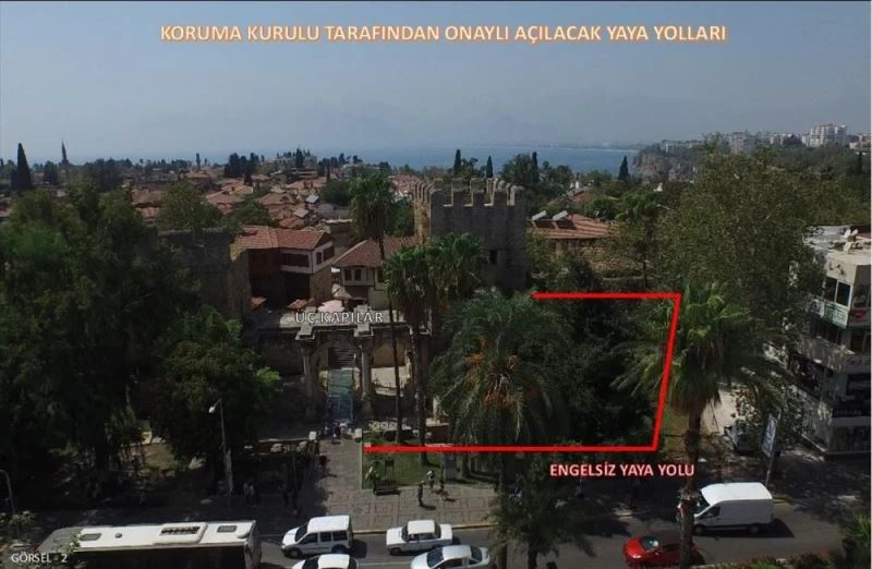 Fen İşleri Daire Başkanlığı Etüd Proje Müdürlüğü tarafından hazırlanan proje ile ilk etapta Hadrian Kapısı ve çevresinde engelli vatandaşların ve merdivenleri kullanamayacak olan yayaların Kaleiçi'ne geçişini sağlamak amacıyla yaya yolu yapılacak.
