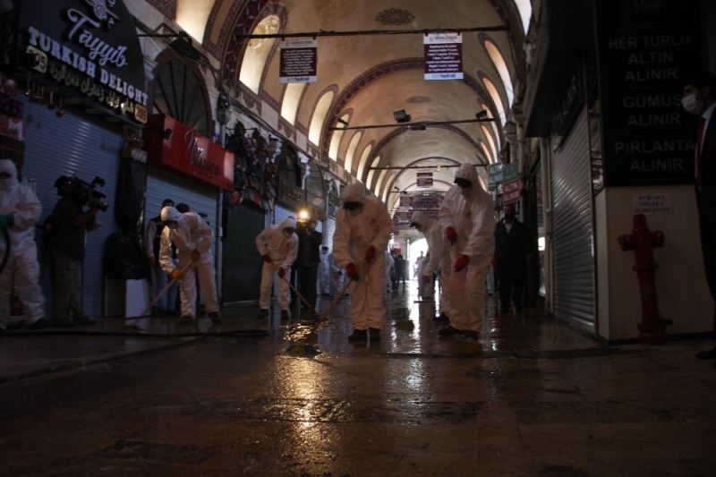 Tarihi Kapalı Çarşı dezenfekte ve temizlik çalışması yapıldı