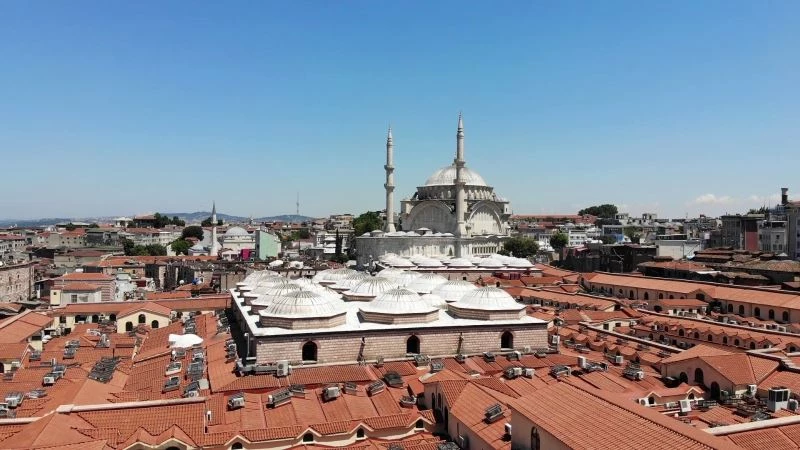 Tarihi Kapalıçarşı’nın çatısı restorasyon çalışmalarının tamamlanmasının ardından 1 Temmuz itibariyle yerli ve yabancı turistlerin ziyaretine açılıyor. Çatının son hali drone ile havadan görüntülendi.