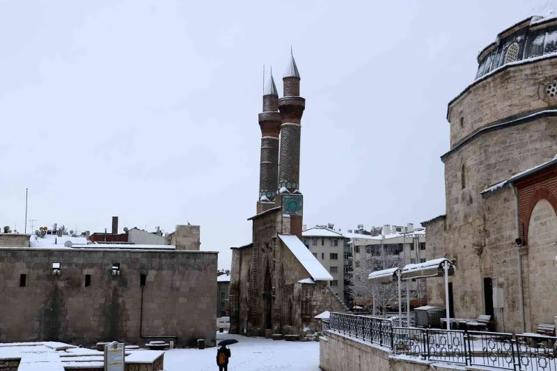 Sivas’ta gece saatlerinde etkili olan kar yağışı sabah saatlerinde de devam etti. Bembeyaz bir güne gözünü açan Sivaslılar eşsiz görüntülerle karşılaştı. Birçok medeniyetin izlerini bir arada bulunduran tarihi kent meydanında kartpostallık görüntüler oluştu. Manzarayı gören vatandaşlar fotoğraf çekilmeyi unutmadı.